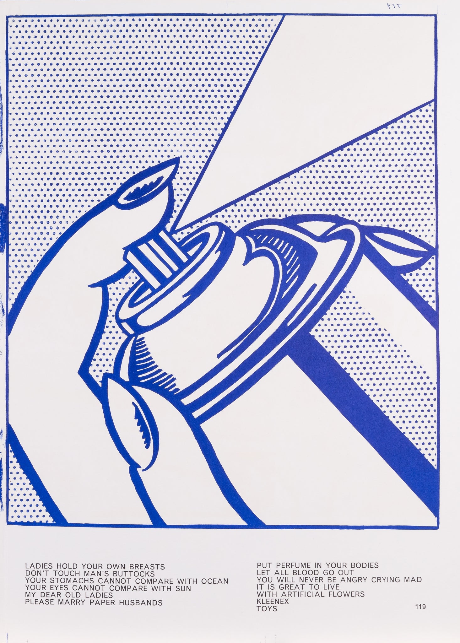 The complete portfolio includes 62 original lithographs by Pierre Alechinsky, Karel Appel, Enrico Baj, Alan Davie, Jim Dine, Sam Francis, Robert Indiana, Asger Jorn, Roy Lichtenstein, Joan Mitchell, Claes Oldenburg, Mel Ramos, Robert Rauschenberg, Jean-Paul Riopelle, James Rosenquist, Antonio Saura, Bram Van Velde, Andy Warhol, Tom Wesselmann and other American and European POP artists.