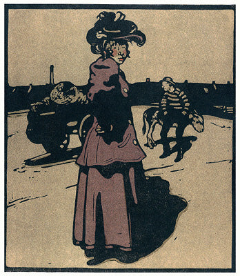 "William Nicholson's woodblock prints of the 1890's were amongst the most revolutionary British print images of the era. They used a treatment of form, with a stylized simplification of shape, and a handling of perspective and picture space which had had no precedent in British art. Influences of Japanese art, and a parallel thinking to, if not a direct knowledge of, the ideas of Toulouse Lautrec and of the Nabis painters in Paris at the same period can certainly be felt, although there is no record that Nicholson had actually studied either at this date." (Weston)